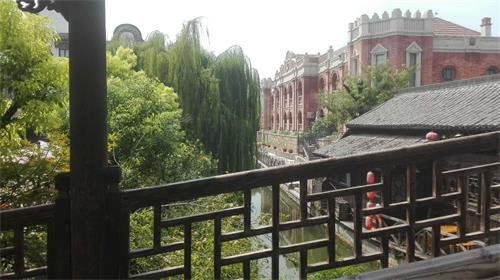 這些建筑座落在城中河的兩側(cè),一排排商鋪,小橋流水,水中有樓,樓間有水,清清的河水和綠油油的樹木,簡直就是江南水鄉(xiāng)。≡谶@古老的街道和巷子中還保留著一些戰(zhàn)爭的遺跡和故事介紹,這些故事記載了當時戰(zhàn)斗景象的慘烈和悲壯。臺兒莊的建筑有的雄偉高大、有的小巧別致、有的古香古色、有的神圣莊嚴真是像導(dǎo)游所說的,這里的建筑是南北交融、中西合璧,可以想像出當年是多么的繁華和興隆。