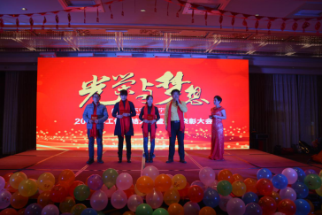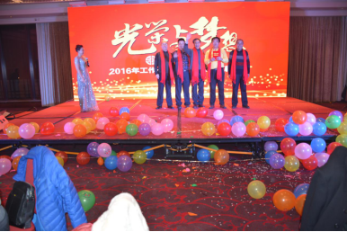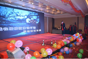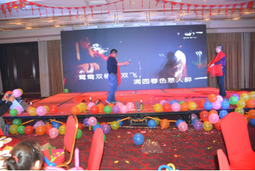 臺(tái)下一桌桌豐盛的晚餐、彼此舉杯同賀、相互祝愿。公司領(lǐng)導(dǎo)與員工親情互動(dòng)、激動(dòng)人心的砸金蛋活動(dòng)、搶錢(qián)大賽、吹瓶比賽......