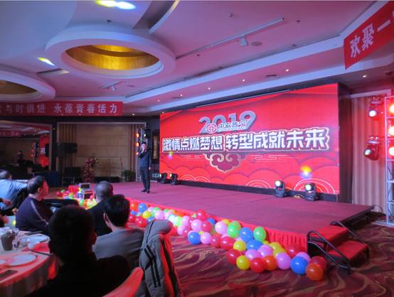 公司領(lǐng)導(dǎo)、公司部分友好人士、全體員工120余人參加了晚會。晚會以公司回顧2018《激情點(diǎn)燃夢想 轉(zhuǎn)型成就未來》拉開了序幕。