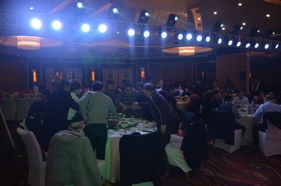 臺下一桌桌豐盛的晚餐、彼此舉杯同賀、相互祝愿。公司領(lǐng)導(dǎo)與員工親情互動、歌聲、掌聲、歡呼聲一直在晚會現(xiàn)場蕩漾。