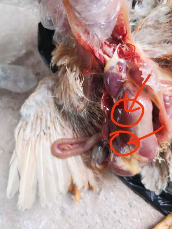 挑選一戶典型剛發(fā)病的雞群,42000只 817,24日齡,分兩棟籠養(yǎng)。養(yǎng)殖戶反應(yīng)最近兩天死亡突然增加,由原來十多只增加到四十多只,還在繼續(xù)增加。大群開始出小雞,精神不佳,采食不增,有咳嗽呼嚕音。眼不紅,糞不干,輕微惡寒。集團技術(shù)老師已投完一輪大腸桿菌藥與滑液囊支原體藥物。