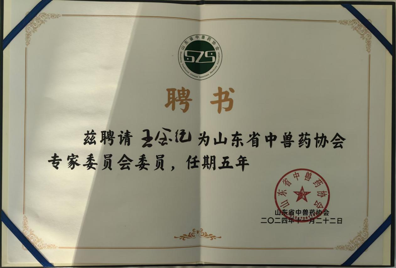 本次會(huì)議還選舉產(chǎn)生了會(huì)長(zhǎng)、副會(huì)長(zhǎng)等多家單位,并確定了秘書長(zhǎng)、監(jiān)事長(zhǎng)等人選,我公司技術(shù)總監(jiān)王金紀(jì)被聘請(qǐng)為山東省中獸藥協(xié)會(huì)專家委員會(huì)委員。