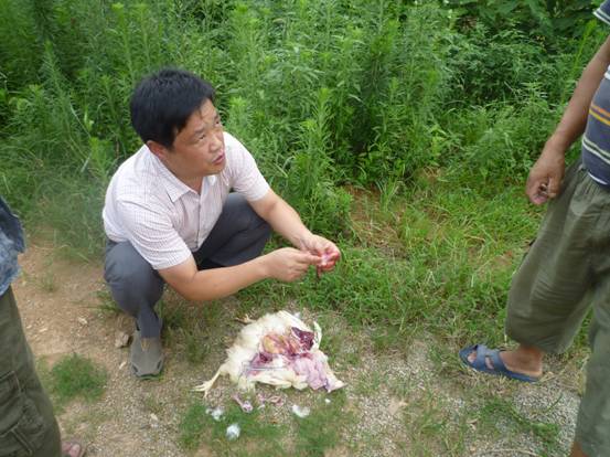 王總對(duì)病雞進(jìn)行解剖