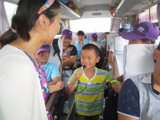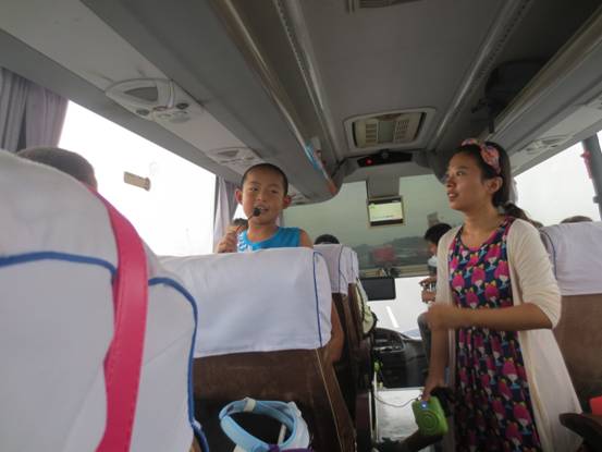 早餐過后在美女導(dǎo)游的主持下,人力資源部的調(diào)動下以一首滾滾長江東逝水開啟了節(jié)目表演接力時段,唱歌、笑話、腦筋急轉(zhuǎn)彎、舞蹈、古詩、三字經(jīng)、出師表等豐富的節(jié)目呈獻給了大家,孩子們也成為重要的演員之一,大家參與度極高一路上歡聲笑語一點也感覺不到時間過得很快。