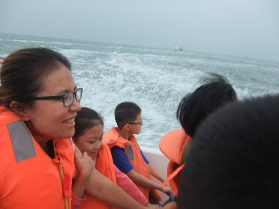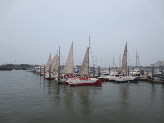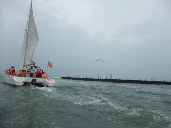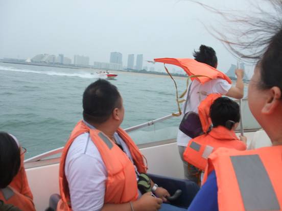 中午12:00多到達了日照,見到了黑黑圓臉導(dǎo)游小劉,小劉安排大家快速用完午餐來到了日照萬平口景區(qū)。在黑黑小劉的一直強說之下,家人乘坐上了游艇、帆船。感受了奧帆基地的風(fēng)采與刺激,感受到大海寬廣的胸懷與氣魄。